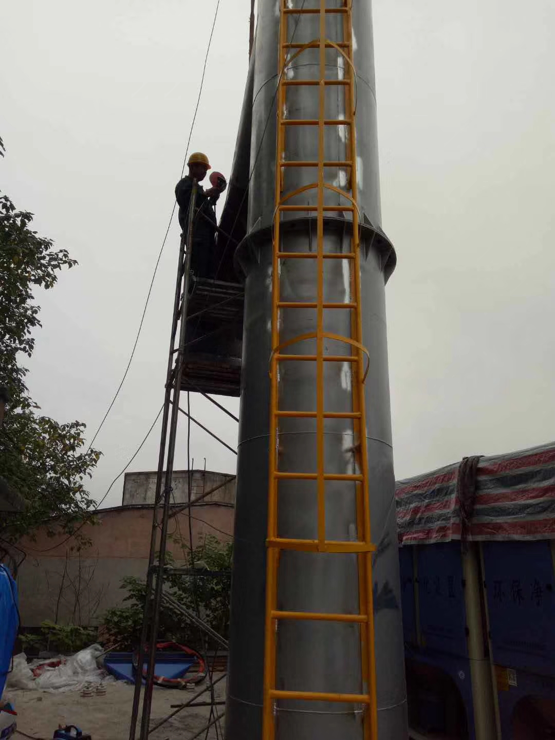 落砂房除塵項(xiàng)目施工前期,路博環(huán)保施工人員爭分奪秒,冒雨作業(yè)