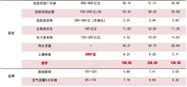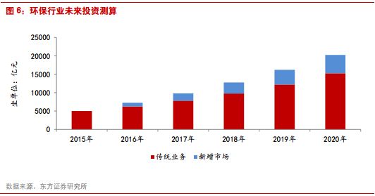 2.十三五進入補舊賬階段,治理打開產(chǎn)業(yè)成長空間 霧霾、黑臭水體等嚴重環(huán)境問題的凸顯,致使我國不得不從利用降低環(huán)境成本來推動經(jīng)濟增長轉(zhuǎn)向環(huán)境成本回歸、力圖恢復生態(tài)環(huán)境的全面治理階段:十三五以及未來的10-20年,將圍繞氣十條、水十條、土十條三大領(lǐng)域的重點整治,投資主線從減排轉(zhuǎn)向治理:1)原有的減排力度要加大,煙氣治理提標、污水處理提標、固廢處理設(shè)施投入加大等;2)補舊賬:針對氣、水、土壤的修復工作。未來五年必須加大投資,才能保證環(huán)境質(zhì)量出現(xiàn)拐點。 利用我們上市公司業(yè)務(wù)模塊模型來分析,進入治理階段環(huán)保產(chǎn)業(yè)的投資將全面升級:原有減排產(chǎn)業(yè)繼續(xù)保持30%左右的高增長,黑臭水體、海綿城市、土壤修復領(lǐng)域給行業(yè)帶來巨大增量。從我們的測算看,“十三五”,水、氣、固廢三大領(lǐng)域的原有業(yè)務(wù)模式將繼續(xù)保持20-30%的增速,而水環(huán)境、海綿城市、土壤修復將帶動1.5-2萬億的投資,年投入3000-4000億元為環(huán)保投入增量。加上傳統(tǒng)業(yè)務(wù)15年環(huán)保投資體量5000億的基礎(chǔ)上每年保持25%的增長,環(huán)保行業(yè)年投資體量將從4000-5000億上升到1-1.5萬億。因此,綜合治理打開環(huán)保產(chǎn)業(yè)投資空間,未來的大公司將圍繞該領(lǐng)域產(chǎn)生。 上市公司業(yè)務(wù)收入結(jié)構(gòu)將發(fā)生變化,水環(huán)境、土壤修復相關(guān)業(yè)務(wù)占比將迅速上升。由于對融資能力、公司項目執(zhí)行能力要求更高,上市公司產(chǎn)業(yè)市場份額將上升。保守估計,到十三五末,環(huán)保產(chǎn)業(yè)真實年投入達到1.5萬億,預計上市公司收入體量有望達到5000億以上。