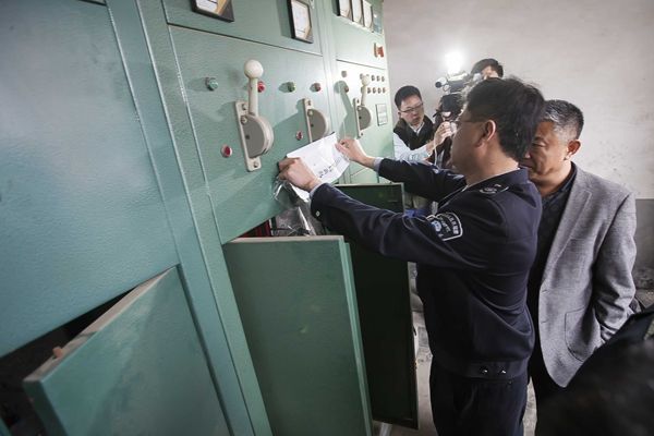??? 貼完封條,環(huán)保部門決定對(duì)企業(yè)拉閘斷電。“對(duì)違法企業(yè)來說,斷了電,不關(guān)停也得關(guān)停。”供電公司找到企業(yè)的配電室,將車間對(duì)應(yīng)的電閘拉下,并由環(huán)保執(zhí)法人員貼上封條。