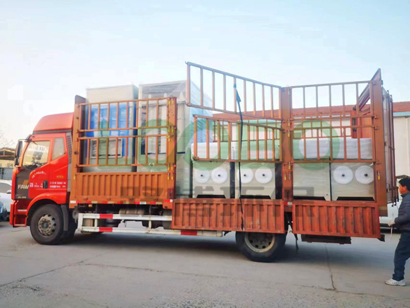 打磨除塵工作臺(tái)及多濾筒除塵器裝車(chē)發(fā)貨。