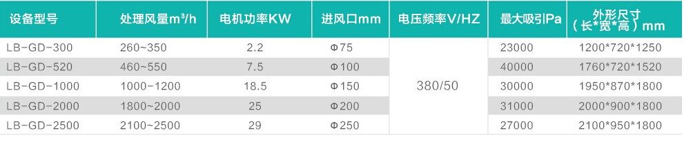 二、中央煙塵凈化器(高負(fù)壓式規(guī)格表: