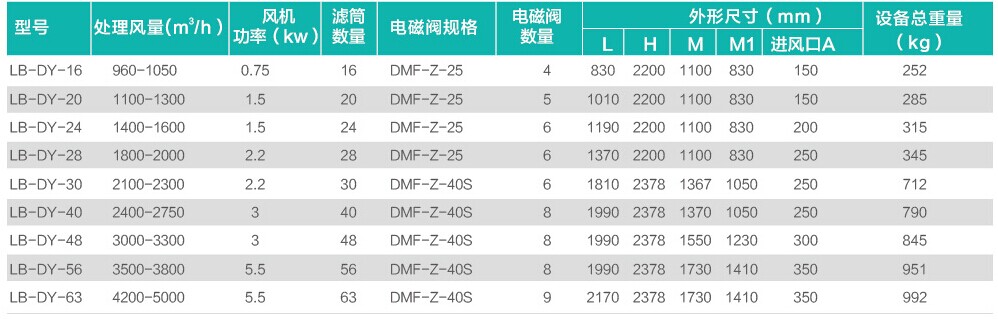 三、布袋除塵器一體機規(guī)格表