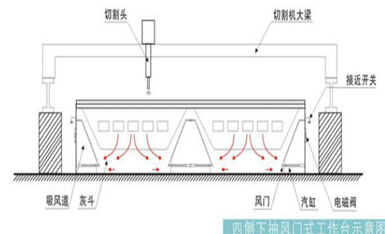 抽風(fēng)均勻,效果好,不受鋼板在切割平臺(tái)上的覆蓋率影響。